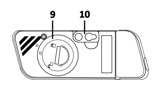 9. 電池艙 (CR2032 x 2) 在后方。