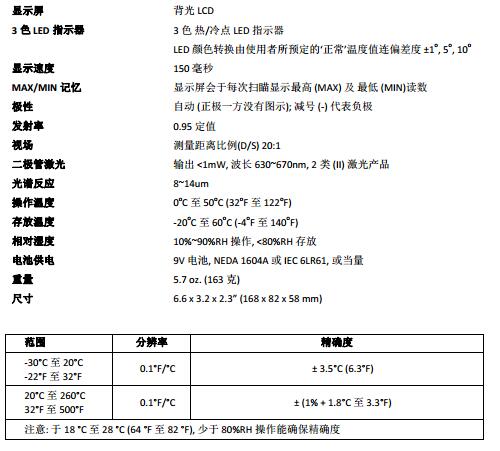 IRT500 紅外線熱力測溫儀。IRT500 雙重紅外線熱力測溫儀配備雙重極光﹐可聽/可見警報﹐五(5)種預(yù)設(shè)初啟設(shè)定及 3 色 LED 指示器﹐幫助使用者輕松找出熱點及冷點。該儀器在交付前均經(jīng)過全面測試及校準(zhǔn)。只要妥善使用,您便可常年享受其可靠服務(wù)。