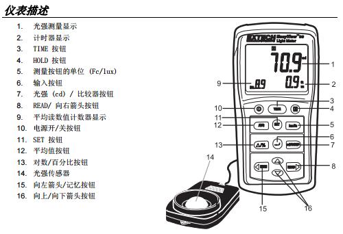 二、EXTECH EA33 儀表圖示 :