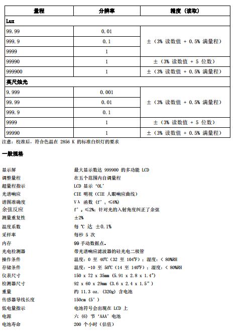 寬測量范圍為99,990Fc(999,900 Lux),分辨率為0.001Fc和0.01Lux