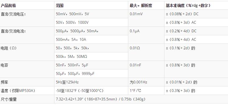 三、EXTECH MP530A 規(guī)格特征 :
