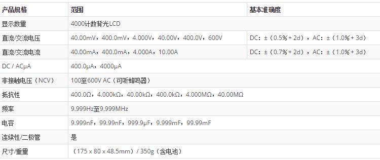 三、EXTECH MN62-K 規(guī)格特征 :