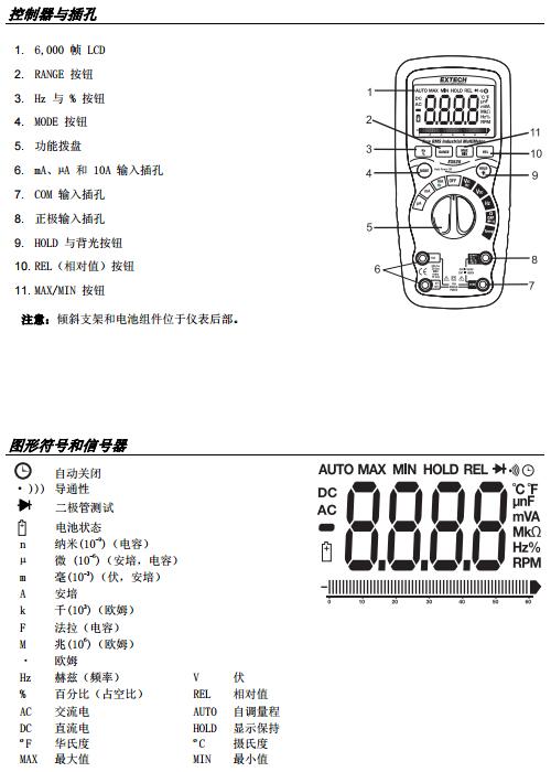 EX520 真有效值自調(diào)量程萬用表。此表可測量交流/直流電壓、交流/直流電流、電阻、電容、頻率(電氣與電子),二極管測試以及導(dǎo)通性與熱電偶溫度。其堅(jiān)固耐用的設(shè)計(jì)可用于重型用途。正確并小心使用此儀表,您便可常年享受其可靠服務(wù)。