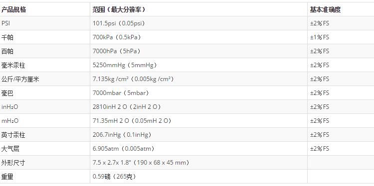 高測量范圍:±101.5psi(7000mbar)
