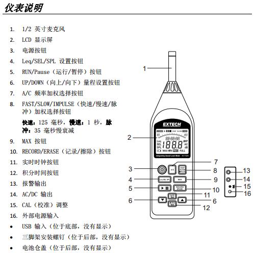 6. 顯示屏上的數(shù)字指示表示當前測得的聲級。此讀數(shù)每秒鐘更新一次。