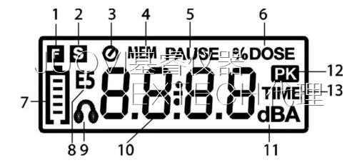 2.單位打開時(shí),顯示的所有項(xiàng)目都開關(guān)簡(jiǎn)要地跟著劑量,標(biāo)準(zhǔn)水平 (Lc)、 閾值水平 (Lt) 和匯率 (ER) 分別。這些參數(shù)是定義在噪聲暴露相關(guān)本手冊(cè)的部分。