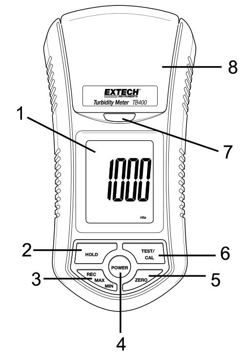 6.隨時按"測試"按鈕。顯示將閃爍約 10 的"試驗"秒,然后濁度值,在臺大的單位,將會顯示。