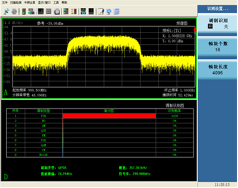 可識(shí)別的數(shù)字信號(hào):2ASK、4ASK、MSK、2FSK、4FSK、8FSK、16FSK、16QAM、32QAM、64QAM、128QAM、256QAM、BPSK、QPSK、8PSK、16PSK、OQPSK、PI/4QPSK。