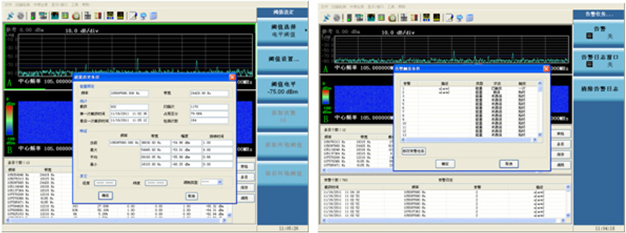 具有瀑布圖、閾值能量圖、告警窗口、能量檢測窗口和頻率列表窗口等全面的信號(hào)分析工具和圖表。