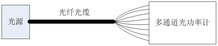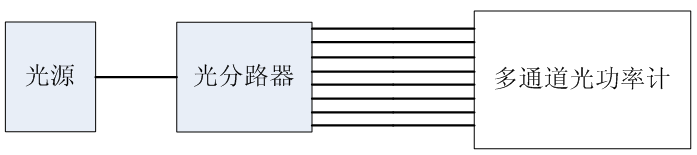 將光分路器的輸出接入到多通道光功率計(jì)的各個(gè)通道,光分路器的輸入與光源輸出端連接,設(shè)定光功率計(jì)的測(cè)量波長(zhǎng)與光源中心波長(zhǎng)一致,測(cè)試光分路器的各個(gè)通道的光功率的差異。