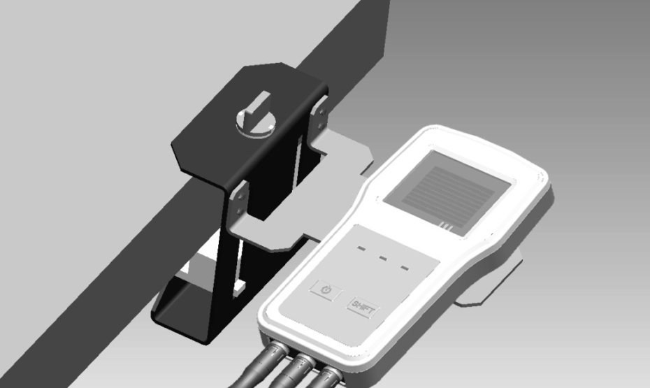 同樣,需要將電池板溫度探頭安裝在電池板背板,可采用下圖的支架吸附安裝或采用其他自行認(rèn)可安裝方式??蓪D中1所示吸盤吸附在電池板背面,然后用3所示壓槽將4所示溫度探頭壓附貼緊在電池板背面。