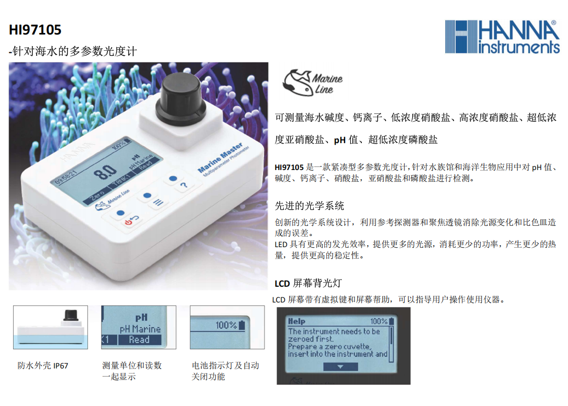 HI97105針對(duì)海水的多參數(shù)光度計(jì) 意大利HANNA哈納