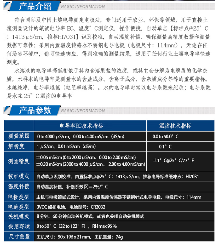 HI98331土壤電導(dǎo)率EC -溫度℃ 測(cè)定儀 哈納HANNA