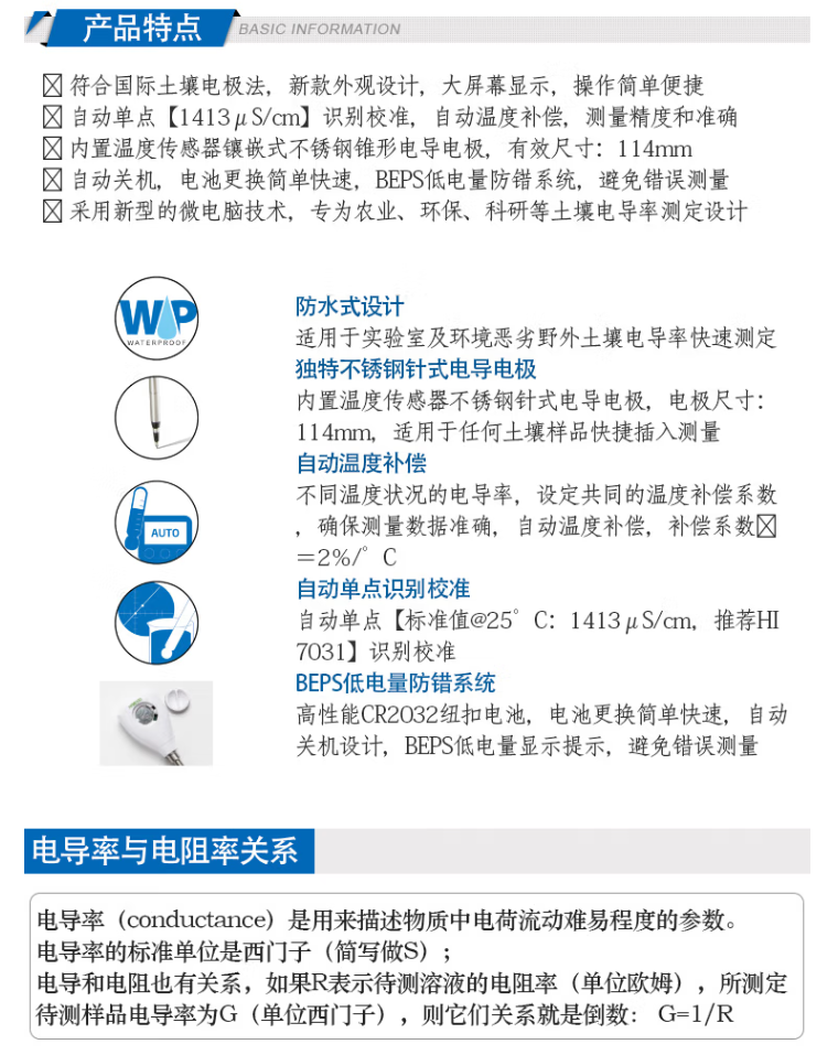 本網(wǎng)頁所展示的有關(guān)【HI98331土壤電導(dǎo)率EC -溫度℃ 測(cè)定儀 哈納HANNA】的信息/圖片/參數(shù)等由的會(huì)員【HANNA哈納 】提供,由柏萊儀器網(wǎng)-專業(yè)銷售儀器儀表服務(wù)商-深圳柏萊科技有限公司會(huì)員【HANNA哈納 】自行對(duì)信息/圖片/參數(shù)等的真實(shí)性、準(zhǔn)確性和合法性負(fù)責(zé),本平臺(tái)(本網(wǎng)站)僅提供展示服務(wù),請(qǐng)謹(jǐn)慎交易,因交易而產(chǎn)生的法律關(guān)系及法律糾紛由您自行協(xié)商解決,本平臺(tái)(本網(wǎng)站)對(duì)此不承擔(dān)任何責(zé)任。您在本網(wǎng)頁可以瀏覽【HI98331土壤電導(dǎo)率EC -溫度℃ 測(cè)定儀 哈納HANNA】有關(guān)的信息/圖片/價(jià)格等及提供 【HI98331土壤電導(dǎo)率EC -溫度℃ 測(cè)定儀 哈納HANNA】的商家公司簡(jiǎn)介、聯(lián)系方式等信息。