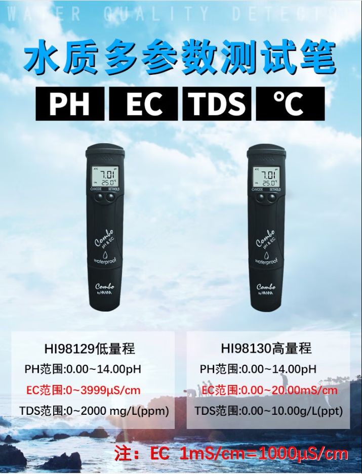 HI98130高量程防水型微電腦筆式酸度PH EC電導(dǎo)率測(cè)TDS 溫度 HANNA哈納