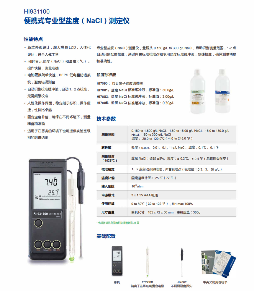 HI931100微電腦鹽度【NaCI】測定儀 哈納HANNA