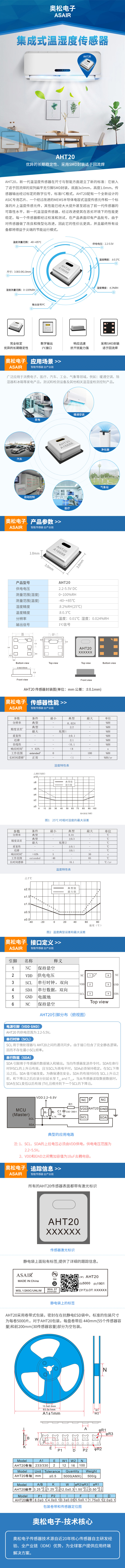 AHT20,新一代溫濕度傳感器在尺寸與智能方面建立了新的標(biāo)準(zhǔn):它嵌入了適于回流焊的雙列扁平無引腳SMD封裝,底面 3 x 3mm ,高度1.0mm。傳感器輸出經(jīng)過標(biāo)定的數(shù)字信號(hào),標(biāo)準(zhǔn) I2 C 格式。