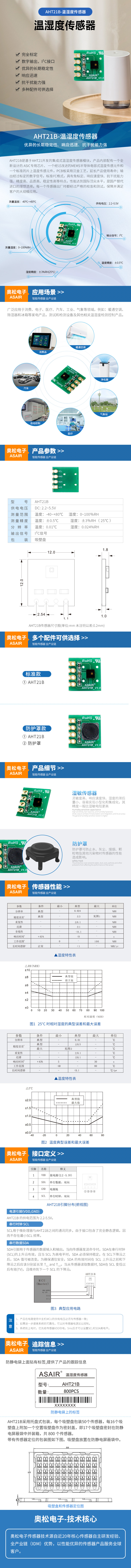 AHT21B是基于AHT21開發(fā)的集成式溫濕度傳感器模塊,產(chǎn)品內(nèi)部配有一個(gè)全新設(shè)計(jì)的 ASIC專用芯片、 一個(gè)經(jīng)過改進(jìn)的MEMS半導(dǎo)體電容式濕度傳感元件和一個(gè)標(biāo)準(zhǔn)的片上溫度傳感元件,PCB板采用沉金工藝,延長(zhǎng)產(chǎn)品使用壽命;輸出經(jīng)過標(biāo)定的數(shù)字信號(hào),標(biāo)準(zhǔn) I2C 格式,具有免標(biāo)定、響應(yīng)速度快、抗干擾能力強(qiáng)、精度高、品質(zhì)高、穩(wěn)定性高等特點(diǎn),性能達(dá)到國(guó)際水平,是國(guó)產(chǎn)替代進(jìn)口的理想選擇。每一個(gè)傳感器出廠時(shí)都經(jīng)過嚴(yán)格的校準(zhǔn)和測(cè)試,保障并滿足客戶的大規(guī)模應(yīng)用。