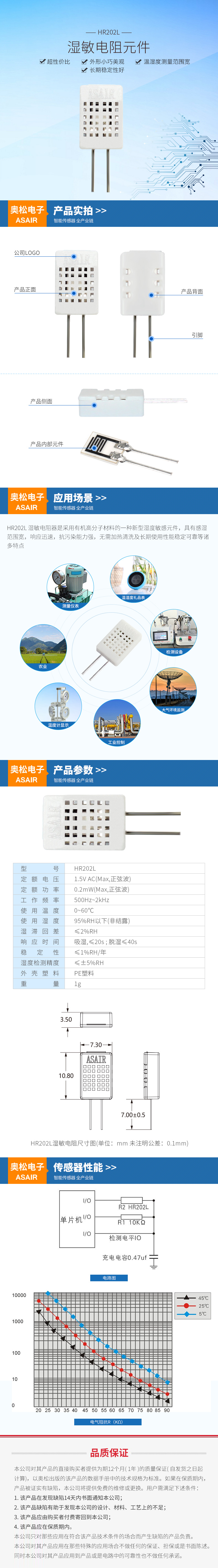 HR202L 濕敏電阻器是采用有機(jī)高分子材料的一種新型濕度敏感元件,具有感濕范圍寬,響應(yīng)迅速,抗污染能力強(qiáng),無(wú)需加熱清洗及長(zhǎng)期使用性能穩(wěn)定可靠等諸多特點(diǎn)。