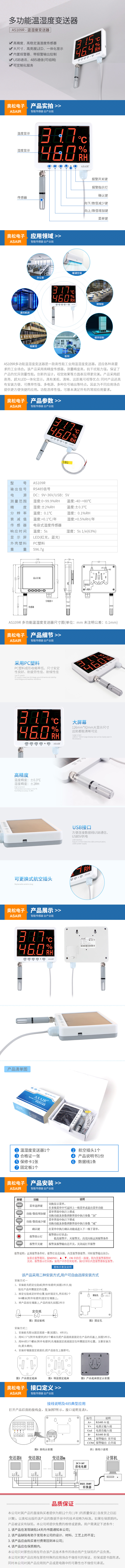 AS109多功能溫濕度變送器是一款高性能工業(yè)用溫濕度變送器,適應(yīng)各種高要求的工業(yè)場合。該產(chǎn)品采用高精度傳感器,測量精度高,抗干擾能力強,保證了產(chǎn)品的優(yōu)異測量性能。創(chuàng)新的設(shè)計,視覺效果等方面表現(xiàn)得更完美。產(chǎn)品采用超高亮、超大LED一體化顯示,具有美觀、清晰、遠(yuǎn)距離可視等優(yōu)點: 同時產(chǎn)品還具有安裝方便、可攜帶性強、多電源、多種信號輸出等特點,因此為不同應(yīng)用場合提供更方便快捷的應(yīng)用。功能選擇性強,可基本滿足所有的常規(guī)應(yīng)用要求。