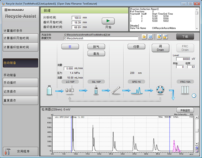 LC-16P輸液泵可以裝上選配的循環(huán)組件和循環(huán)閥,可實現(xiàn)閉合回路循環(huán)分離,且合適的低泵腔體積可以有效阻礙色譜柱以外的擴散,以高效率、低成本、節(jié)能環(huán)保的方式顯著提升分離效果。通過使用Recycle-Assist循環(huán)助手軟件,從循環(huán)分離到餾分收集全程都可自動化進行,實現(xiàn)操作方式簡易化、操作流程快捷化。