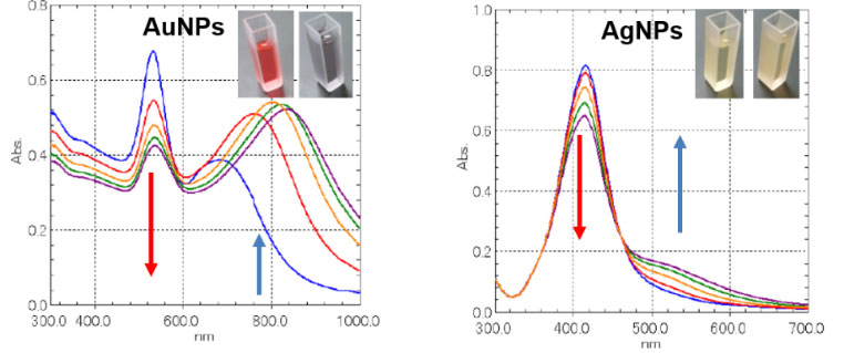 超快掃描速度,輕松追蹤化學(xué)反應(yīng)過(guò)程。下圖為當(dāng)納米粒子中加入NaCl鹽溶液后,在不同時(shí)間下紫光光譜監(jiān)測(cè)到的粒子聚集過(guò)程。