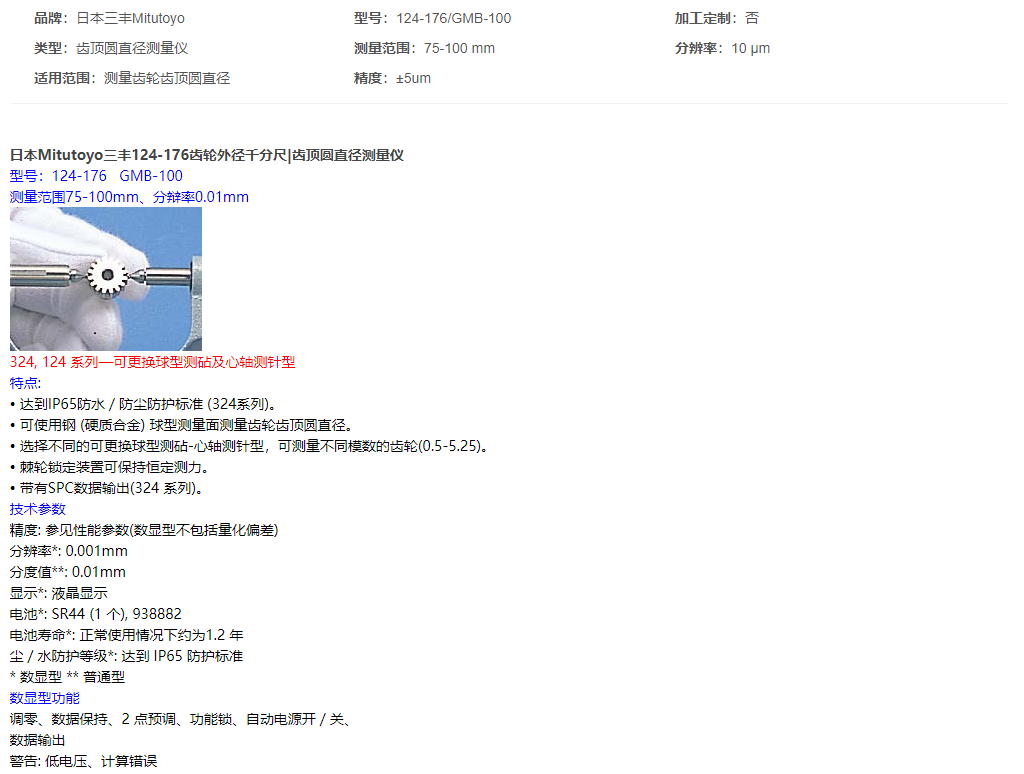 本網(wǎng)頁所展示的有關(guān)【三豐 124-176齒輪外徑千分尺】的信息/圖片/參數(shù)等由的會員【日本三豐mitutoyo-深圳柏萊科技有限公司 】提供,由柏萊儀器網(wǎng)-專業(yè)銷售儀器儀表服務(wù)商-深圳柏萊科技有限公司會員【日本三豐mitutoyo-深圳柏萊科技有限公司 】自行對信息/圖片/參數(shù)等的真實性、準確性和合法性負責(zé),本平臺(本網(wǎng)站)僅提供展示服務(wù),請謹慎交易,因交易而產(chǎn)生的法律關(guān)系及法律糾紛由您自行協(xié)商解決,本平臺(本網(wǎng)站)對此不承擔(dān)任何責(zé)任。您在本網(wǎng)頁可以瀏覽【三豐 124-176齒輪外徑千分尺】有關(guān)的信息/圖片/價格等及提供 【三豐 124-176齒輪外徑千分尺】的商家公司簡介、聯(lián)系方式等信息。