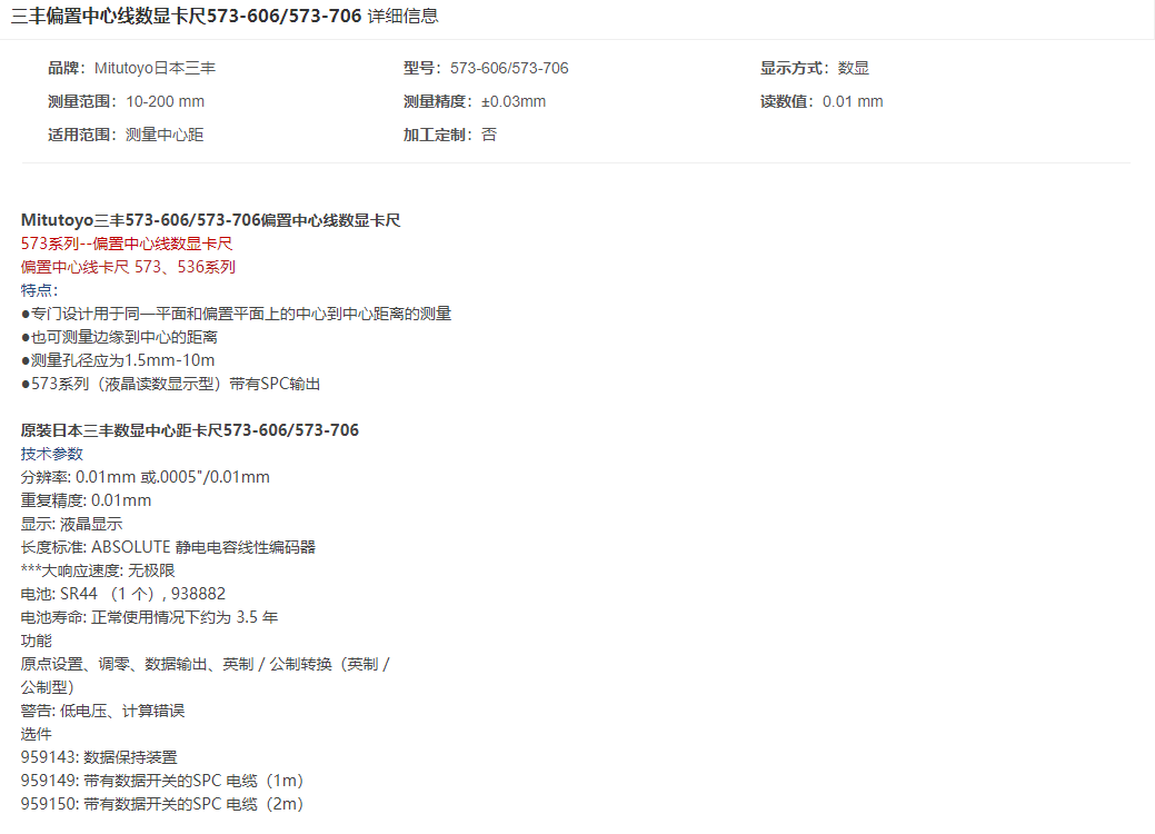本網(wǎng)頁(yè)所展示的有關(guān)【三豐 573-606/573-706偏置中心線數(shù)顯卡尺】的信息/圖片/參數(shù)等由的會(huì)員【日本三豐mitutoyo-深圳柏萊科技有限公司 】提供,由柏萊儀器網(wǎng)-專業(yè)銷售儀器儀表服務(wù)商-深圳柏萊科技有限公司會(huì)員【日本三豐mitutoyo-深圳柏萊科技有限公司 】自行對(duì)信息/圖片/參數(shù)等的真實(shí)性、準(zhǔn)確性和合法性負(fù)責(zé),本平臺(tái)(本網(wǎng)站)僅提供展示服務(wù),請(qǐng)謹(jǐn)慎交易,因交易而產(chǎn)生的法律關(guān)系及法律糾紛由您自行協(xié)商解決,本平臺(tái)(本網(wǎng)站)對(duì)此不承擔(dān)任何責(zé)任。您在本網(wǎng)頁(yè)可以瀏覽【三豐 573-606/573-706偏置中心線數(shù)顯卡尺】有關(guān)的信息/圖片/價(jià)格等及提供 【三豐 573-606/573-706偏置中心線數(shù)顯卡尺】的商家公司簡(jiǎn)介、聯(lián)系方式等信息。