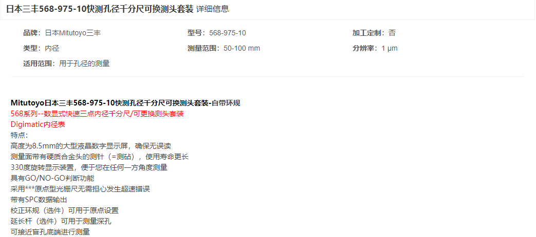 本網(wǎng)頁所展示的有關(guān)【三豐 568-975-10快測孔徑千分尺可換測頭套裝】的信息/圖片/參數(shù)等由的會員【日本三豐mitutoyo-深圳柏萊科技有限公司 】提供,由柏萊儀器網(wǎng)-專業(yè)銷售儀器儀表服務(wù)商-深圳柏萊科技有限公司會員【日本三豐mitutoyo-深圳柏萊科技有限公司 】自行對信息/圖片/參數(shù)等的真實(shí)性、準(zhǔn)確性和合法性負(fù)責(zé),本平臺(本網(wǎng)站)僅提供展示服務(wù),請謹(jǐn)慎交易,因交易而產(chǎn)生的法律關(guān)系及法律糾紛由您自行協(xié)商解決,本平臺(本網(wǎng)站)對此不承擔(dān)任何責(zé)任。您在本網(wǎng)頁可以瀏覽【三豐 568-975-10快測孔徑千分尺可換測頭套裝】有關(guān)的信息/圖片/價(jià)格等及提供 【三豐 568-975-10快測孔徑千分尺可換測頭套裝】的商家公司簡介、聯(lián)系方式等信息。