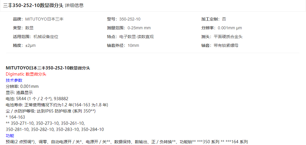 本網(wǎng)頁所展示的有關(guān)【三豐 350-252-10數(shù)顯微分頭】的信息/圖片/參數(shù)等由的會(huì)員【日本三豐mitutoyo-深圳柏萊科技有限公司 】提供,由柏萊儀器網(wǎng)-專業(yè)銷售儀器儀表服務(wù)商-深圳柏萊科技有限公司會(huì)員【日本三豐mitutoyo-深圳柏萊科技有限公司 】自行對信息/圖片/參數(shù)等的真實(shí)性、準(zhǔn)確性和合法性負(fù)責(zé),本平臺(tái)(本網(wǎng)站)僅提供展示服務(wù),請謹(jǐn)慎交易,因交易而產(chǎn)生的法律關(guān)系及法律糾紛由您自行協(xié)商解決,本平臺(tái)(本網(wǎng)站)對此不承擔(dān)任何責(zé)任。您在本網(wǎng)頁可以瀏覽【三豐 350-252-10數(shù)顯微分頭】有關(guān)的信息/圖片/價(jià)格等及提供 【三豐 350-252-10數(shù)顯微分頭】的商家公司簡介、聯(lián)系方式等信息。