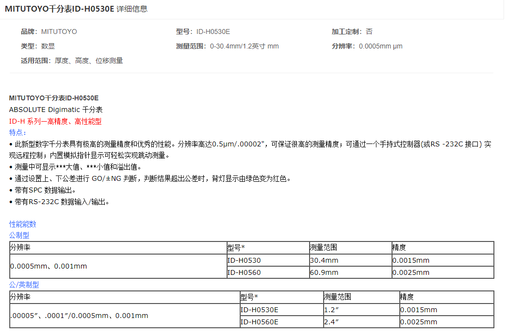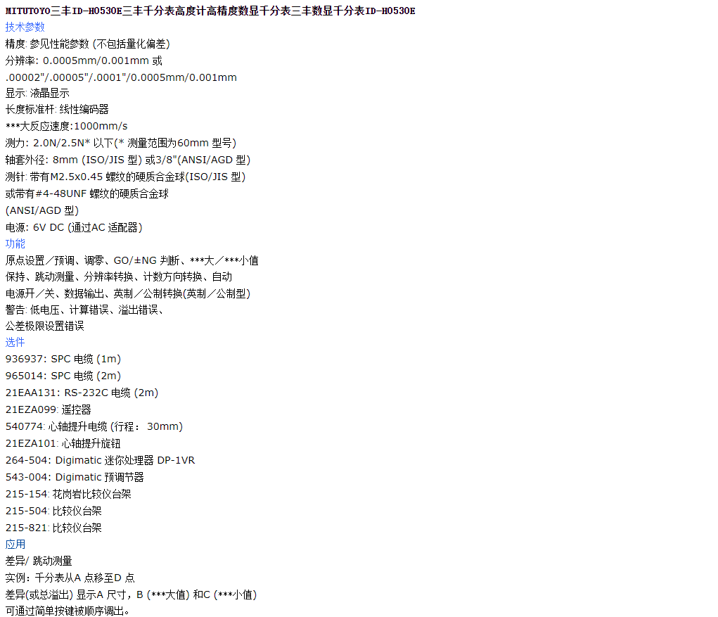 本網(wǎng)頁所展示的有關(guān)【三豐 ID-H0530E千分表】的信息/圖片/參數(shù)等由的會員【日本三豐mitutoyo-深圳柏萊科技有限公司 】提供,由柏萊儀器網(wǎng)-專業(yè)銷售儀器儀表服務(wù)商-深圳柏萊科技有限公司會員【日本三豐mitutoyo-深圳柏萊科技有限公司 】自行對信息/圖片/參數(shù)等的真實性、準(zhǔn)確性和合法性負(fù)責(zé),本平臺(本網(wǎng)站)僅提供展示服務(wù),請謹(jǐn)慎交易,因交易而產(chǎn)生的法律關(guān)系及法律糾紛由您自行協(xié)商解決,本平臺(本網(wǎng)站)對此不承擔(dān)任何責(zé)任。您在本網(wǎng)頁可以瀏覽【三豐 ID-H0530E千分表】有關(guān)的信息/圖片/價格等及提供 【三豐 ID-H0530E千分表】的商家公司簡介、聯(lián)系方式等信息。