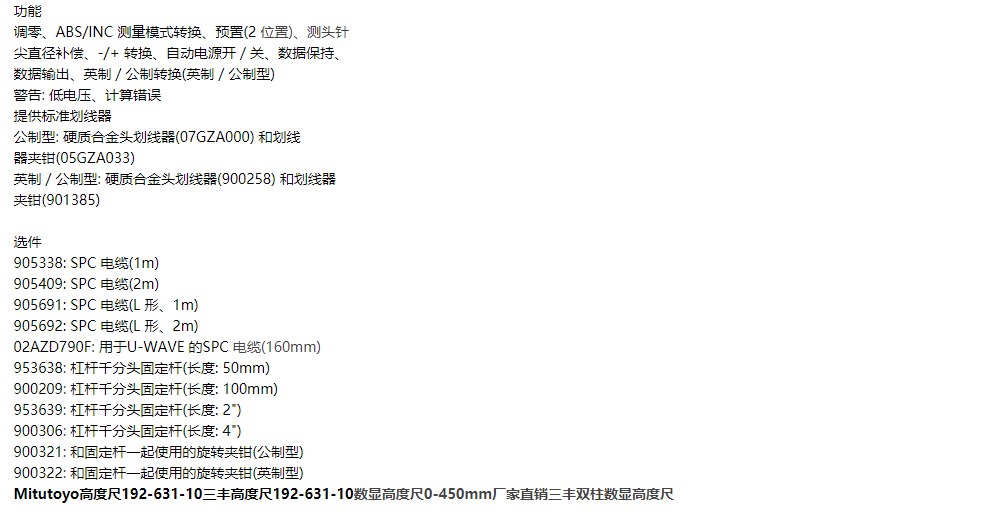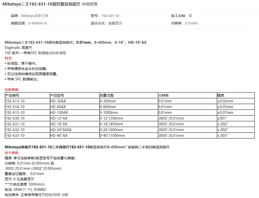 本網(wǎng)頁(yè)所展示的有關(guān)【三豐 192-631-10雙柱數(shù)顯高度尺】的信息/圖片/參數(shù)等由的會(huì)員【日本三豐mitutoyo-深圳柏萊科技有限公司 】提供,由柏萊儀器網(wǎng)-專業(yè)銷售儀器儀表服務(wù)商-深圳柏萊科技有限公司會(huì)員【日本三豐mitutoyo-深圳柏萊科技有限公司 】自行對(duì)信息/圖片/參數(shù)等的真實(shí)性、準(zhǔn)確性和合法性負(fù)責(zé),本平臺(tái)(本網(wǎng)站)僅提供展示服務(wù),請(qǐng)謹(jǐn)慎交易,因交易而產(chǎn)生的法律關(guān)系及法律糾紛由您自行協(xié)商解決,本平臺(tái)(本網(wǎng)站)對(duì)此不承擔(dān)任何責(zé)任。您在本網(wǎng)頁(yè)可以瀏覽【三豐 192-631-10雙柱數(shù)顯高度尺】有關(guān)的信息/圖片/價(jià)格等及提供 【三豐 192-631-10雙柱數(shù)顯高度尺】的商家公司簡(jiǎn)介、聯(lián)系方式等信息。