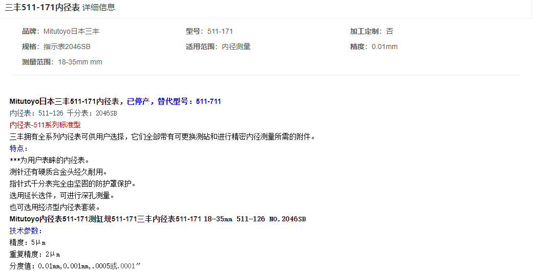 本網(wǎng)頁(yè)所展示的有關(guān)【三豐 511-171內(nèi)徑表】的信息/圖片/參數(shù)等由的會(huì)員【日本三豐mitutoyo-深圳柏萊科技有限公司 】提供,由柏萊儀器網(wǎng)-專業(yè)銷售儀器儀表服務(wù)商-深圳柏萊科技有限公司會(huì)員【日本三豐mitutoyo-深圳柏萊科技有限公司 】自行對(duì)信息/圖片/參數(shù)等的真實(shí)性、準(zhǔn)確性和合法性負(fù)責(zé),本平臺(tái)(本網(wǎng)站)僅提供展示服務(wù),請(qǐng)謹(jǐn)慎交易,因交易而產(chǎn)生的法律關(guān)系及法律糾紛由您自行協(xié)商解決,本平臺(tái)(本網(wǎng)站)對(duì)此不承擔(dān)任何責(zé)任。您在本網(wǎng)頁(yè)可以瀏覽【三豐 511-171內(nèi)徑表】有關(guān)的信息/圖片/價(jià)格等及提供 【三豐 511-171內(nèi)徑表】的商家公司簡(jiǎn)介、聯(lián)系方式等信息。
