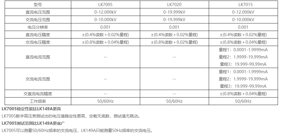 LK149ALK149B直流電壓0-10.000kV0-19.999kV交流電壓0-10.000kV0-19.999kV電壓分辨率0.001精度±(1%±2個(gè)字)工作頻率50Hz |