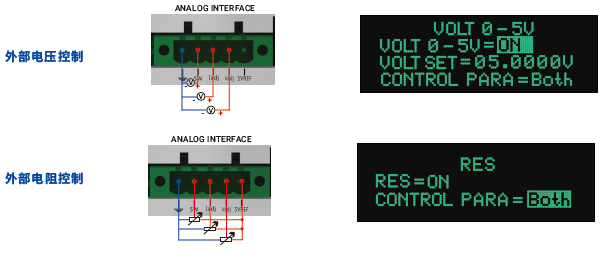該系列電源提供外部電壓/電阻控制輸出,可利用外加電源(0~5V)或是外接可變電阻(5~10K)來(lái)控制電壓電流的設(shè)定以及電源的輸出狀態(tài)。
