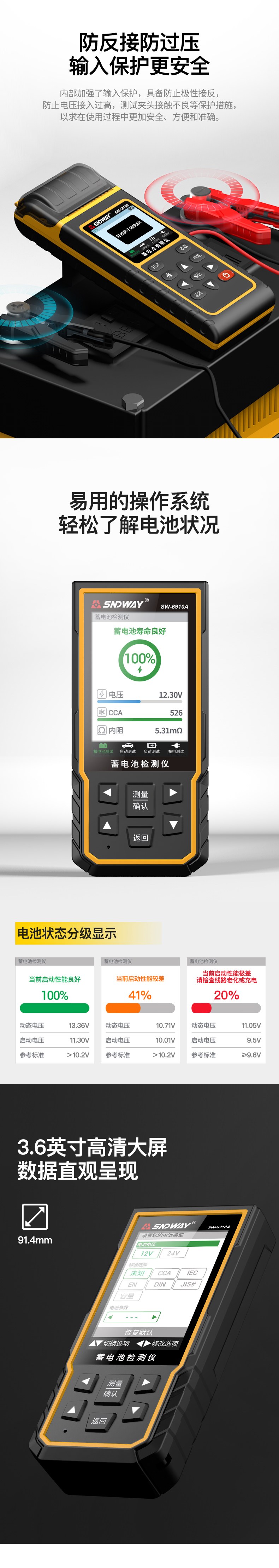 本網(wǎng)頁所展示的有關(guān)【深達(dá)威 SW-6910 12V24V汽車蓄電池檢測儀數(shù)顯電池壽命通用測試儀放電修復(fù)器】的信息/圖片/參數(shù)等由的會員【深達(dá)威-深圳柏萊科技有限公司 】提供,由柏萊儀器網(wǎng)-專業(yè)銷售儀器儀表服務(wù)商-深圳柏萊科技有限公司會員【深達(dá)威-深圳柏萊科技有限公司 】自行對信息/圖片/參數(shù)等的真實(shí)性、準(zhǔn)確性和合法性負(fù)責(zé),本平臺(本網(wǎng)站)僅提供展示服務(wù),請謹(jǐn)慎交易,因交易而產(chǎn)生的法律關(guān)系及法律糾紛由您自行協(xié)商解決,本平臺(本網(wǎng)站)對此不承擔(dān)任何責(zé)任。您在本網(wǎng)頁可以瀏覽【深達(dá)威 SW-6910 12V24V汽車蓄電池檢測儀數(shù)顯電池壽命通用測試儀放電修復(fù)器】有關(guān)的信息/圖片/價格等及提供 【深達(dá)威 SW-6910 12V24V汽車蓄電池檢測儀數(shù)顯電池壽命通用測試儀放電修復(fù)器】的商家公司簡介、聯(lián)系方式等信息。