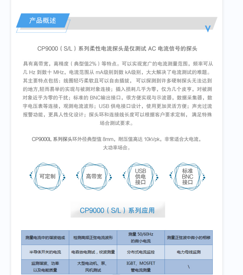 CP9600L柔性電流探頭 CP9300L羅氏線圈 知用