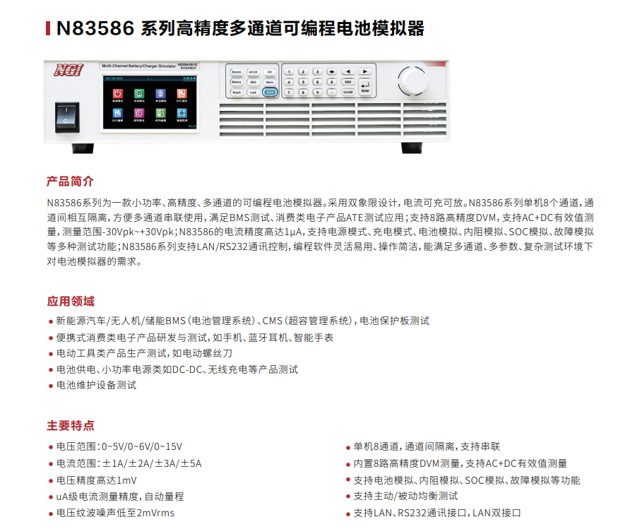 恩智 N83586系列高精度多通道可編程電池模擬器