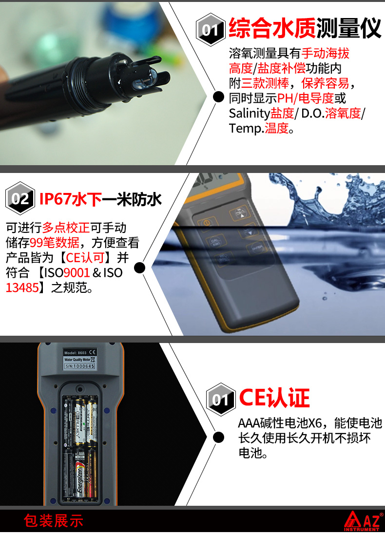 本網(wǎng)頁(yè)所展示的有關(guān)【AZ86031多功能水質(zhì)檢測(cè)儀溶氧儀PH測(cè)試儀電導(dǎo)率鹽度TDS分析儀】的信息/圖片/參數(shù)等由的會(huì)員【臺(tái)灣衡欣AZ-深圳柏萊科技有限公司 】提供,由柏萊儀器網(wǎng)-專業(yè)銷售儀器儀表服務(wù)商-深圳柏萊科技有限公司會(huì)員【臺(tái)灣衡欣AZ-深圳柏萊科技有限公司 】自行對(duì)信息/圖片/參數(shù)等的真實(shí)性、準(zhǔn)確性和合法性負(fù)責(zé),本平臺(tái)(本網(wǎng)站)僅提供展示服務(wù),請(qǐng)謹(jǐn)慎交易,因交易而產(chǎn)生的法律關(guān)系及法律糾紛由您自行協(xié)商解決,本平臺(tái)(本網(wǎng)站)對(duì)此不承擔(dān)任何責(zé)任。您在本網(wǎng)頁(yè)可以瀏覽【AZ86031多功能水質(zhì)檢測(cè)儀溶氧儀PH測(cè)試儀電導(dǎo)率鹽度TDS分析儀】有關(guān)的信息/圖片/價(jià)格等及提供 【AZ86031多功能水質(zhì)檢測(cè)儀溶氧儀PH測(cè)試儀電導(dǎo)率鹽度TDS分析儀】的商家公司簡(jiǎn)介、聯(lián)系方式等信息。