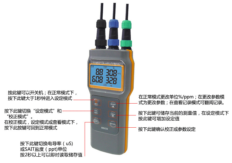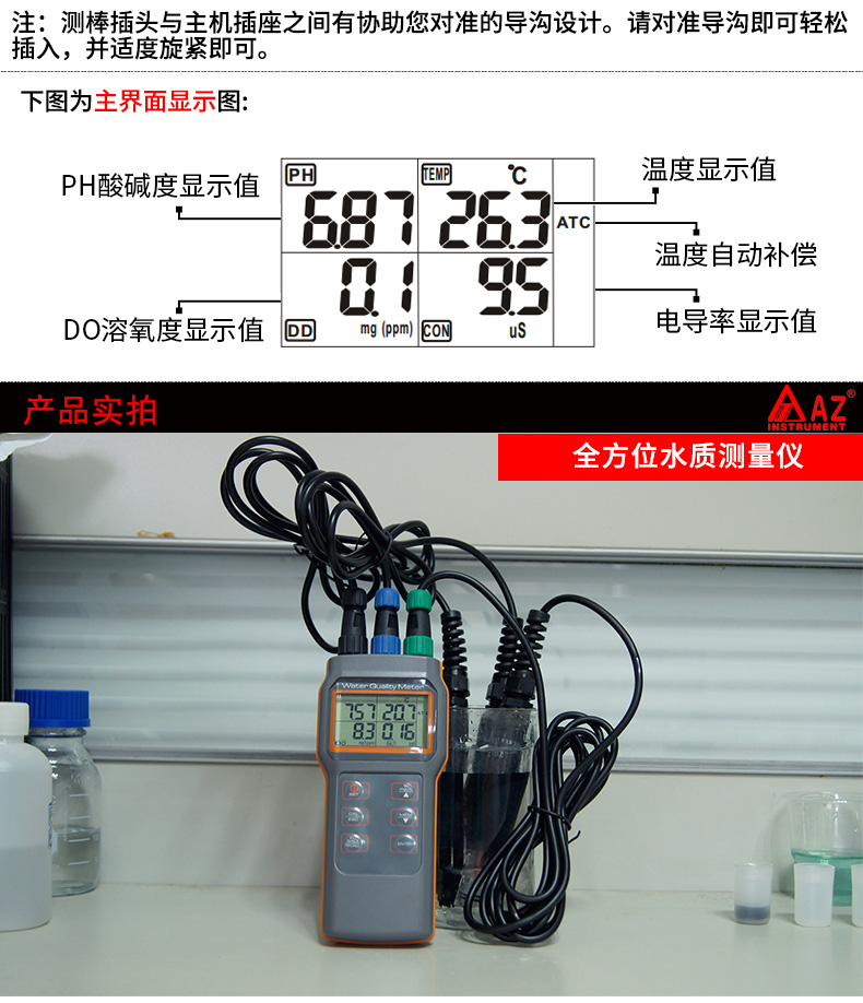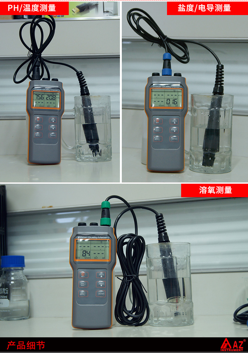 AZ86031多功能水質(zhì)檢測(cè)儀溶氧儀PH測(cè)試儀電導(dǎo)率鹽度TDS分析儀