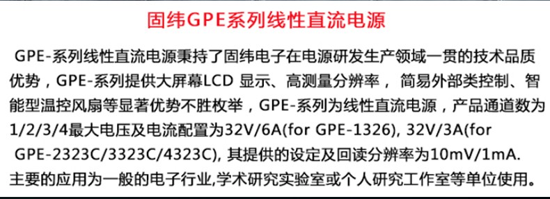 本網(wǎng)頁所展示的有關(guān)【GPS4303C直流穩(wěn)壓電源固緯】的信息/圖片/參數(shù)等由的會員【固緯-深圳柏萊科技有限公司 】提供,由柏萊儀器網(wǎng)-專業(yè)銷售儀器儀表服務商-深圳柏萊科技有限公司會員【固緯-深圳柏萊科技有限公司 】自行對信息/圖片/參數(shù)等的真實性、準確性和合法性負責,本平臺(本網(wǎng)站)僅提供展示服務,請謹慎交易,因交易而產(chǎn)生的法律關(guān)系及法律糾紛由您自行協(xié)商解決,本平臺(本網(wǎng)站)對此不承擔任何責任。您在本網(wǎng)頁可以瀏覽【GPS4303C直流穩(wěn)壓電源固緯】有關(guān)的信息/圖片/價格等及提供 【GPS4303C直流穩(wěn)壓電源固緯】的商家公司簡介、聯(lián)系方式等信息。