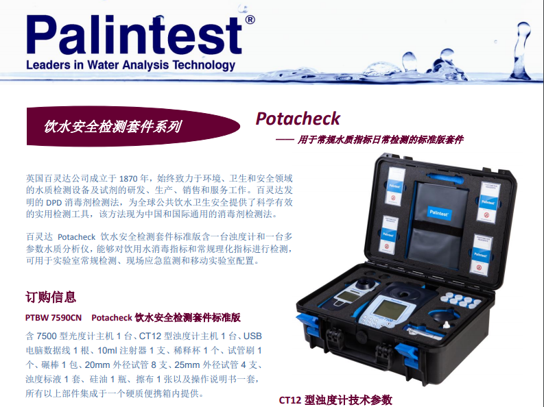 百靈達Potacheck飲水安全檢測套件標(biāo)準(zhǔn)版含一臺濁度計和一臺多參數(shù)水質(zhì)分析儀,能夠?qū)︼嬘盟局笜?biāo)和常規(guī)理化指標(biāo)進行檢測,可用于實驗室常規(guī)檢測、現(xiàn)場應(yīng)急監(jiān)測和移動實驗室配置。