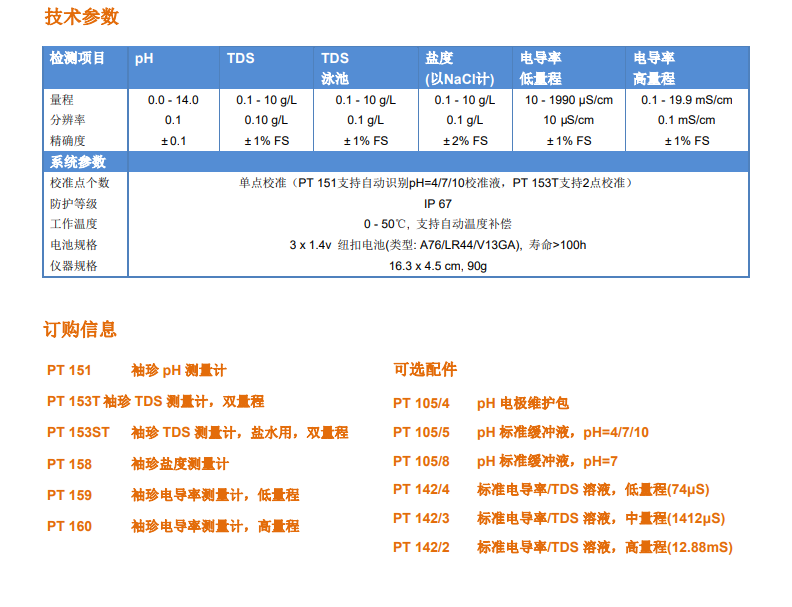 百靈達(dá)袖珍型單參數(shù)測量計系列PT 151/153T/153ST/158/159/160