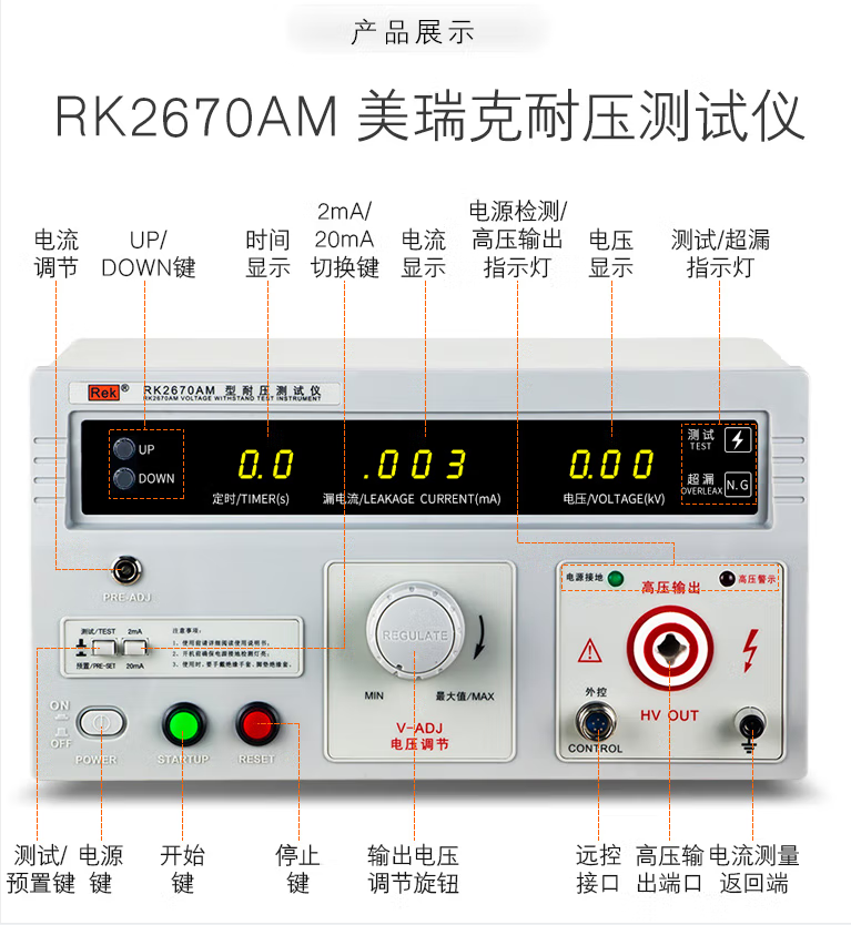 RK2670AM耐壓測試儀 數(shù)顯耐壓測試儀 安規(guī)高壓檢測試儀