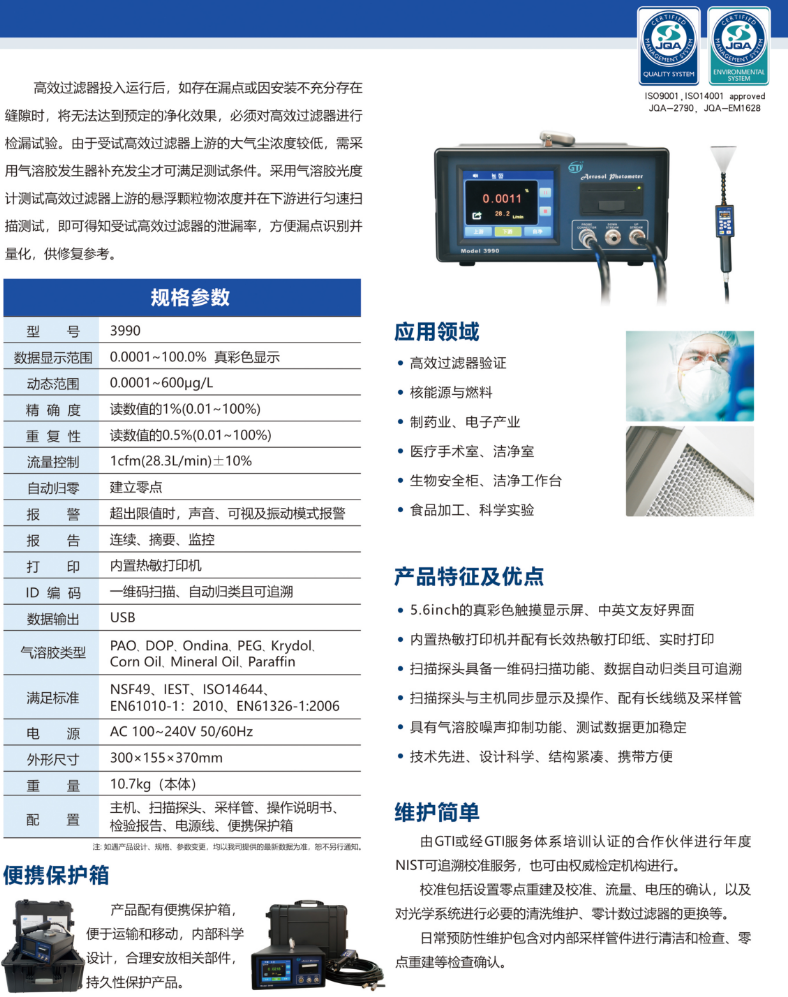 氣溶膠光度計 MODEL 3990