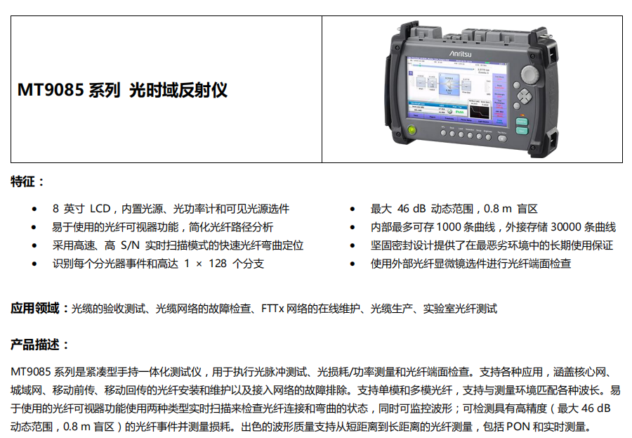 本網(wǎng)頁(yè)所展示的有關(guān)【MT9085光時(shí)域反射儀】的信息/圖片/參數(shù)等由的會(huì)員【日本安立-深圳柏萊科技有限公司 】提供,由柏萊儀器網(wǎng)-專業(yè)銷售儀器儀表服務(wù)商-深圳柏萊科技有限公司會(huì)員【日本安立-深圳柏萊科技有限公司 】自行對(duì)信息/圖片/參數(shù)等的真實(shí)性、準(zhǔn)確性和合法性負(fù)責(zé),本平臺(tái)(本網(wǎng)站)僅提供展示服務(wù),請(qǐng)謹(jǐn)慎交易,因交易而產(chǎn)生的法律關(guān)系及法律糾紛由您自行協(xié)商解決,本平臺(tái)(本網(wǎng)站)對(duì)此不承擔(dān)任何責(zé)任。您在本網(wǎng)頁(yè)可以瀏覽【MT9085光時(shí)域反射儀】有關(guān)的信息/圖片/價(jià)格等及提供 【MT9085光時(shí)域反射儀】的商家公司簡(jiǎn)介、聯(lián)系方式等信息。