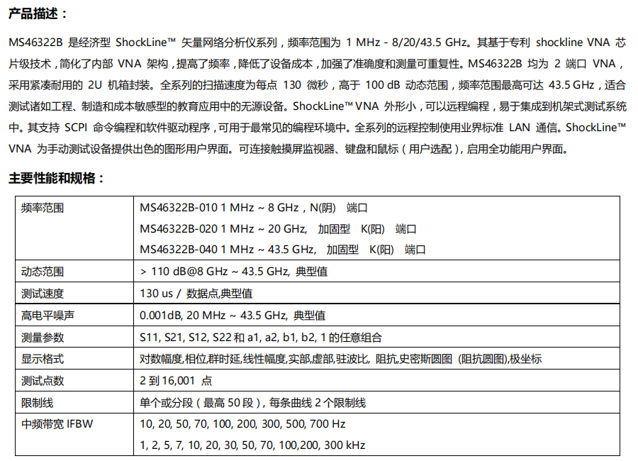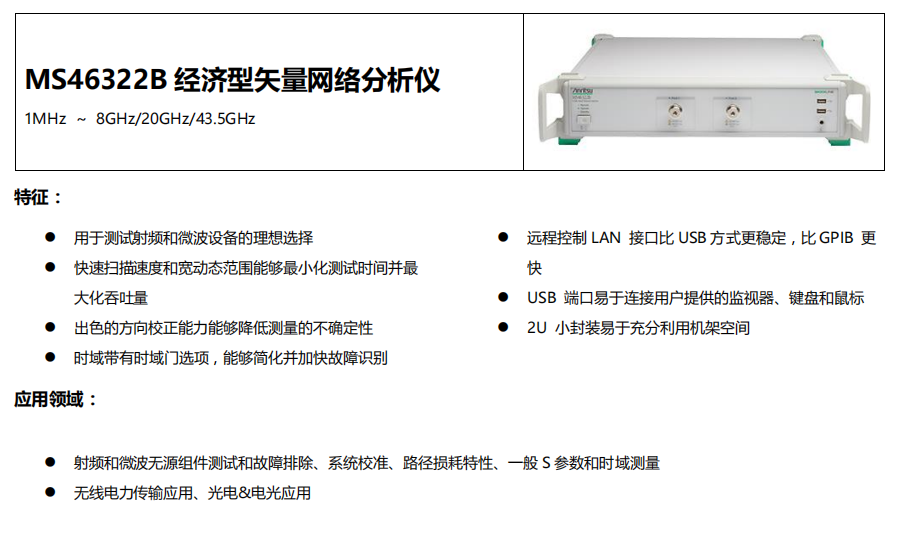 經(jīng)濟(jì)型矢量網(wǎng)絡(luò)分析儀MS46322B