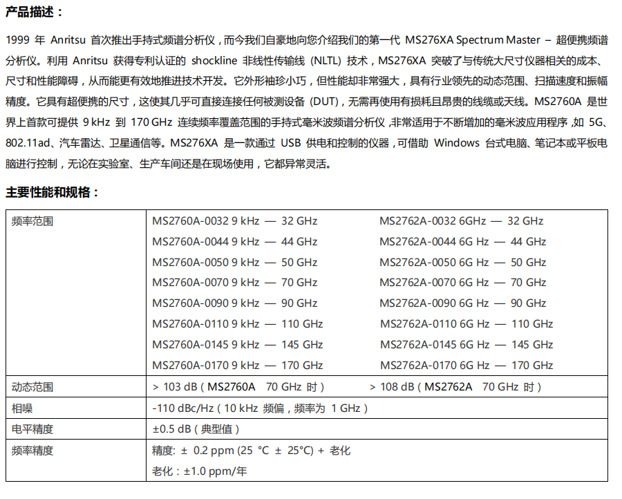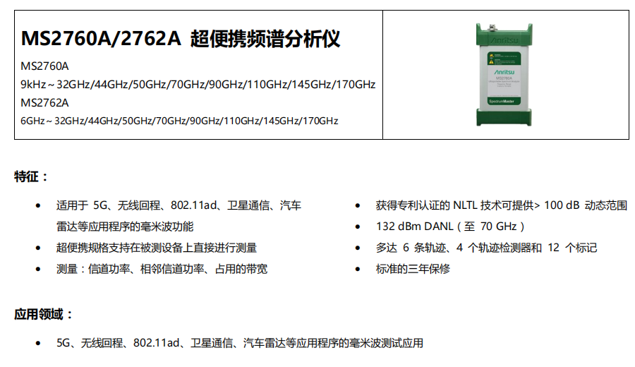 超便攜頻譜分析儀MS2760A/2762A
