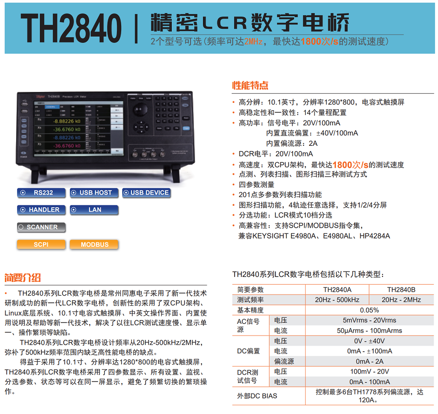 本網(wǎng)頁所展示的有關【TH2840A精密LCR數(shù)字電橋】的信息/圖片/參數(shù)等由的會員【同惠電子 -深圳柏萊科技有限公司 】提供,由柏萊儀器網(wǎng)-專業(yè)銷售儀器儀表服務商-深圳柏萊科技有限公司會員【同惠電子 -深圳柏萊科技有限公司 】自行對信息/圖片/參數(shù)等的真實性、準確性和合法性負責,本平臺(本網(wǎng)站)僅提供展示服務,請謹慎交易,因交易而產(chǎn)生的法律關系及法律糾紛由您自行協(xié)商解決,本平臺(本網(wǎng)站)對此不承擔任何責任。您在本網(wǎng)頁可以瀏覽【TH2840A精密LCR數(shù)字電橋】有關的信息/圖片/價格等及提供 【TH2840A精密LCR數(shù)字電橋】的商家公司簡介、聯(lián)系方式等信息。