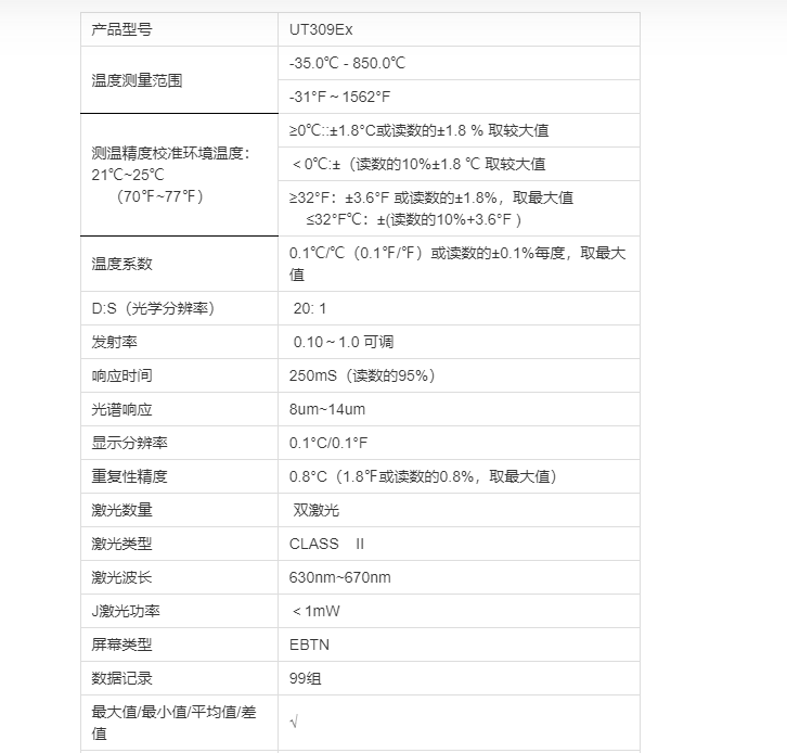 防爆紅外測(cè)溫儀UT309Ex 優(yōu)利德 本安型